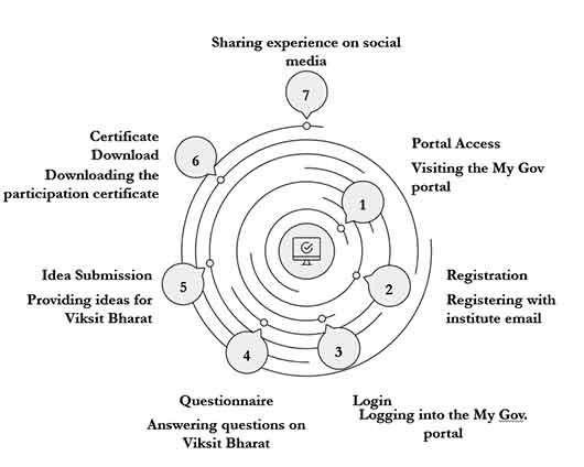 Outline of Viksit Bharat 2047 Viksit Bharat 2047 reflects the Government of India’s forward-looking vision to elevate the nation to developed status by the time it completes 100 years of Independence. The framework includes key pillars such as economic growth, social progress, environmental responsibility, and transparent governance, marking a crucial phase in India’s developmental journey. Achieving this national goal requires consistent effort, confidence in the country’s future, and an appreciation of the immense skills and potential of its citizens especially its youth. As the largest demographic group, young people are expected to lead the nation’s progress and drive India toward becoming a prosperous and advanced nation by 2047. In alignment with this aspiration, the Prime Minister has urged the youth to contribute actively through the initiative “Ideas from Youth for Viksit Bharat 2047.” This effort aims to motivate students across the country to share their insights and suggestions to strengthen the collective vision of Viksit Bharat 2047 and enhance participation on the dedicated national platform.