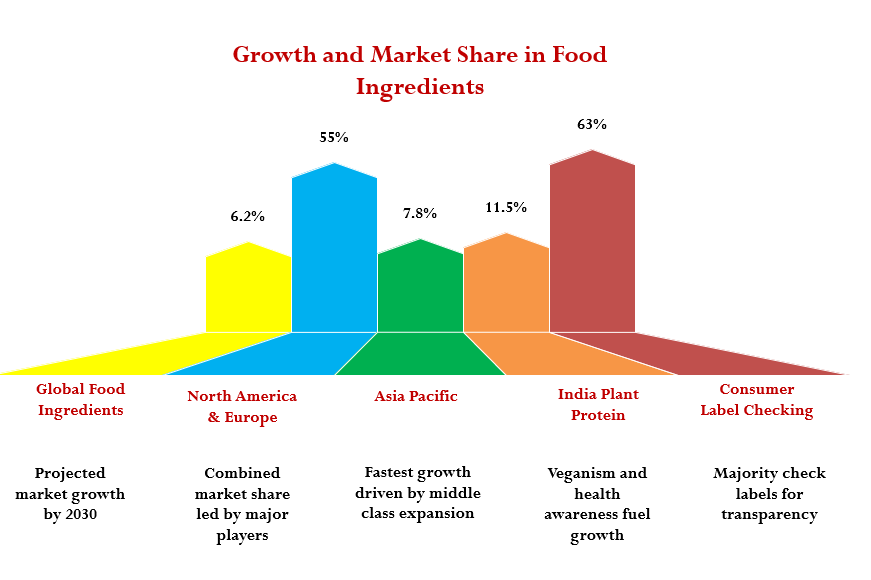 Food ingredients industry- Future prospects The food ingredients industry, a cornerstone of the global food supply chain, is currently experiencing a significant transformation. Increasing consumer awareness of nutrition, sustainability, and food safety has prompted ingredient manufacturers to adopt science-based innovations and advanced technologies. According to Fortune Business Insights (2025), the global food ingredients market is expected to reach US$510 billion by 2030, growing at a compound annual growth rate (CAGR) of 6.2% between 2024 and 2030. This steady growth being driven by multiple converging trends including the rising popularity of functional foods, demand for clean label products, the shift toward plant-based proteins, and the integration of digital and sustainable practices within the food ecosystem.